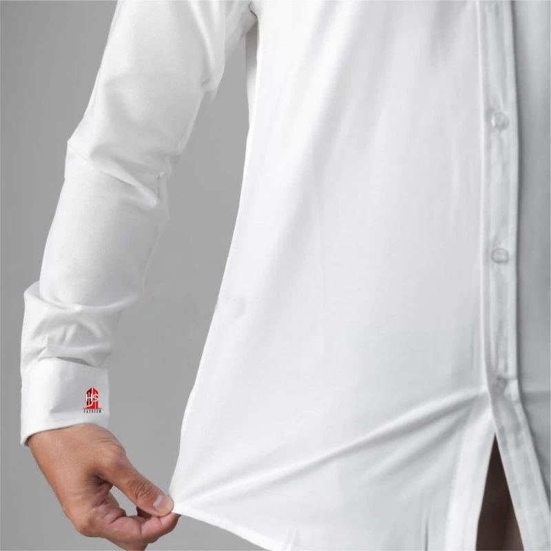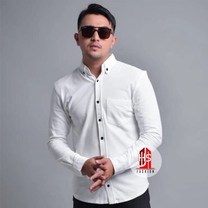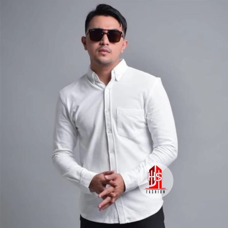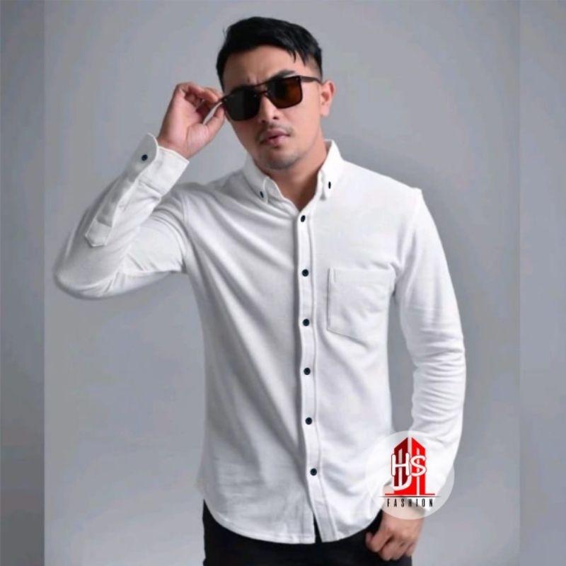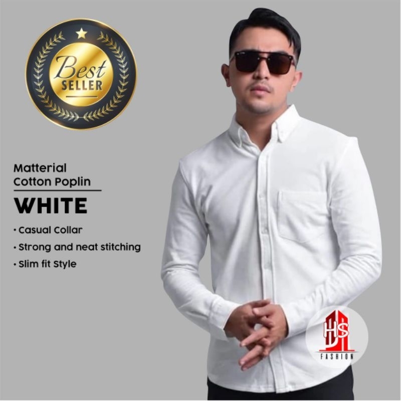 [Star] Kemeja Pria Lengan Panjang Kemeja KerjaPria Polos Slimfit Hitam Putih