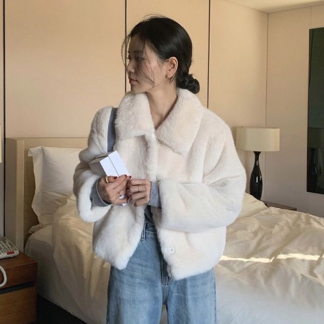 Jacket Fuzzy Crop Wanita Bulu Fur Warm Coat Sherpa Outwear