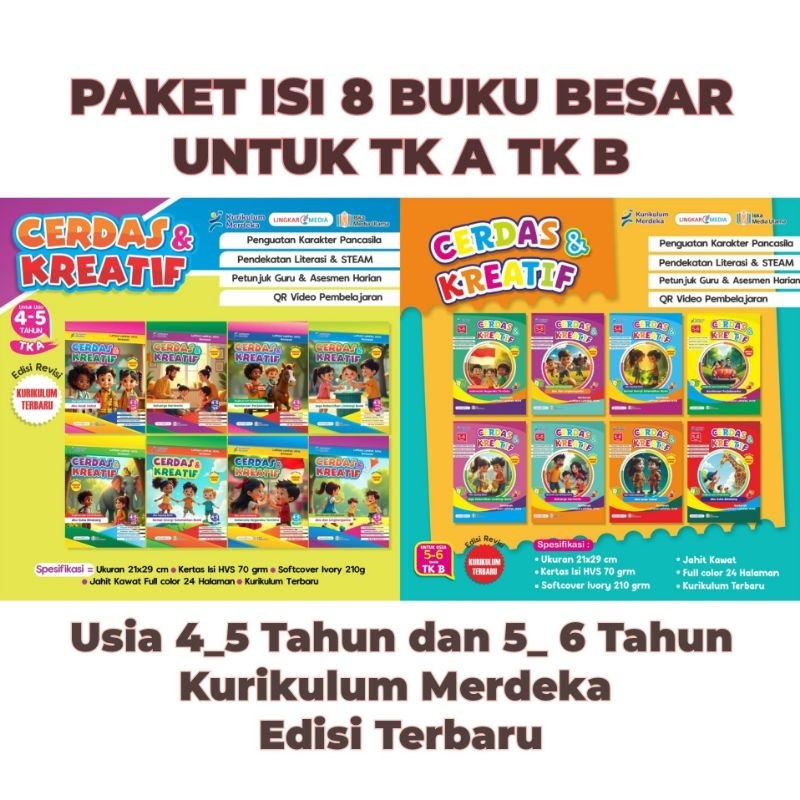 PAKET ISI 8 BUKU CERDAS DAN KREATIF TK A DAN TK B KURIKULUM MERDEKA USIA 4-5 DAN 5-6 TAHUN - LINGKAR MEDIA