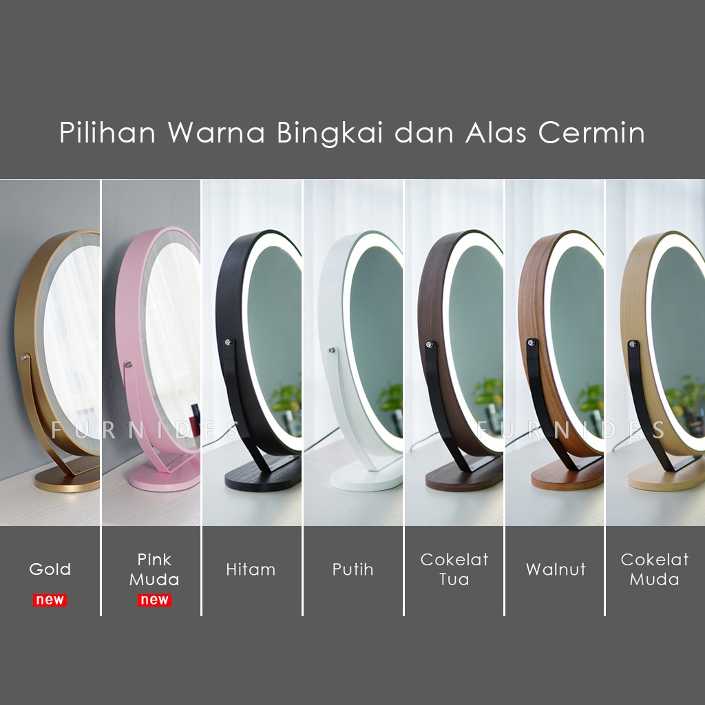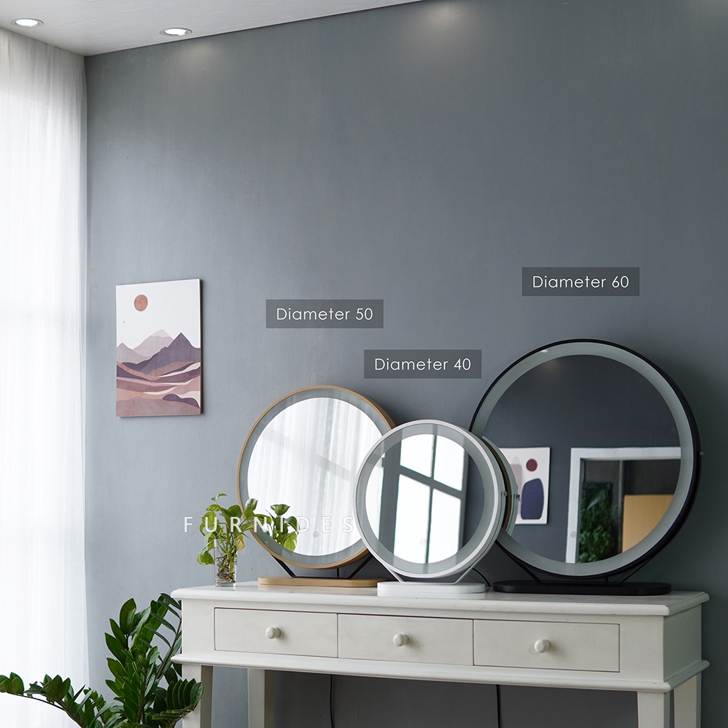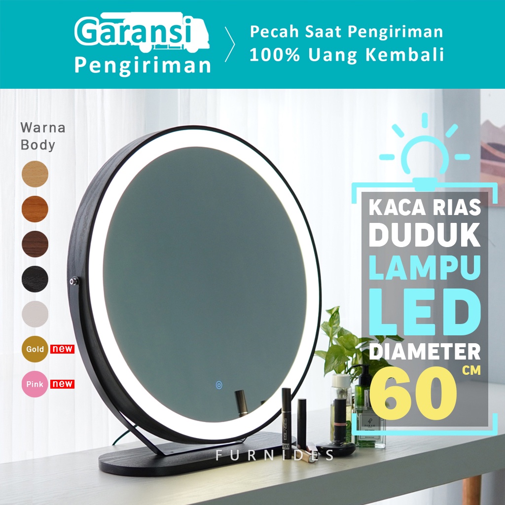 Cermin Rias Bulat | Make Up Duduk Lampu LED Diemeter 60 cm