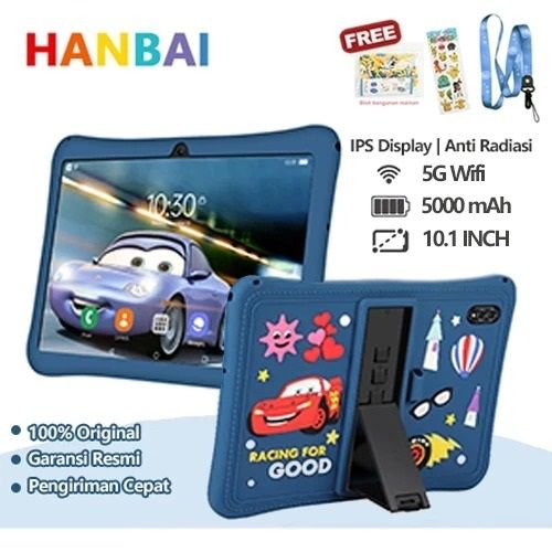 Tablet Anak Hanbai Tablet Anak Android F12 6GB+128GB 10.1inch Wifi 5G Dual SIM Tablet PC Asli Tablet Untuk Belajar Anak