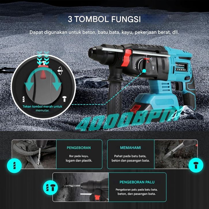 CONVENYY Rotary hamer drill 1100W Bor Palu Brushless Multifungsi Pahat Listrik Bor Impact Mesin bor beton