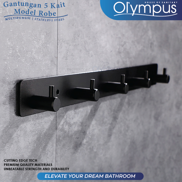 Gantungan 5 Kait Model Pin Bulat Handuk Baju Kamar Mandi Kamar Tidur Multifungsi Stainless Steel Hitam