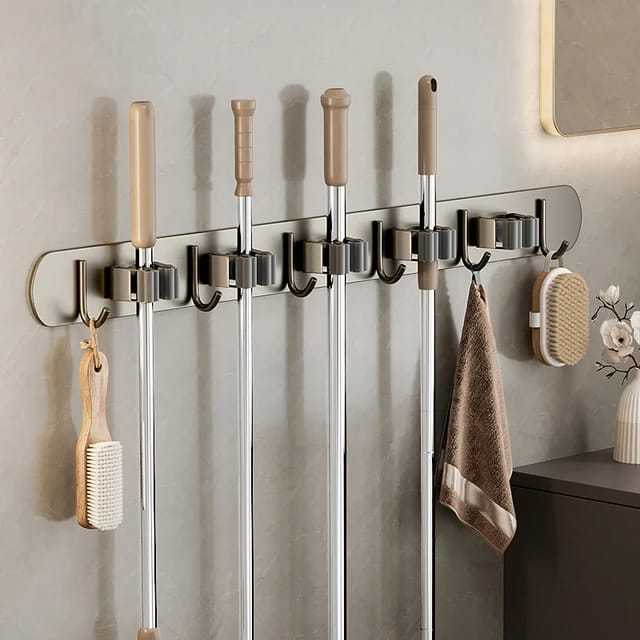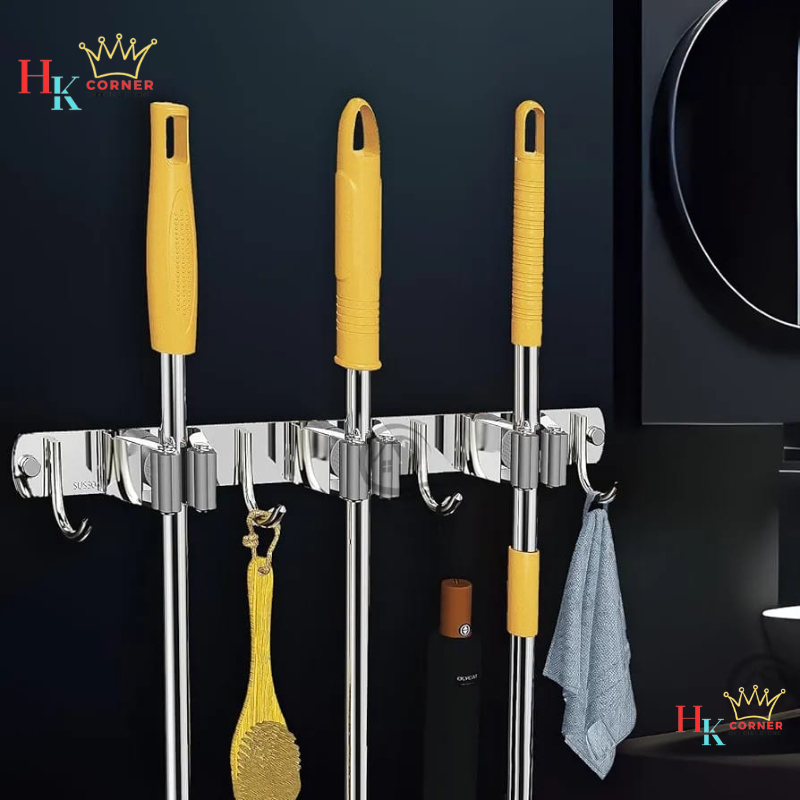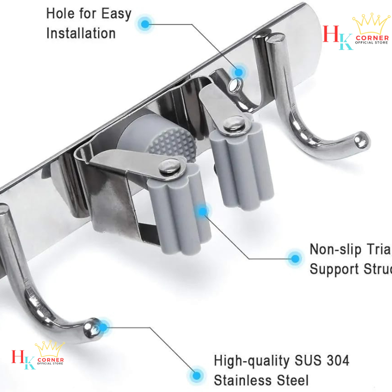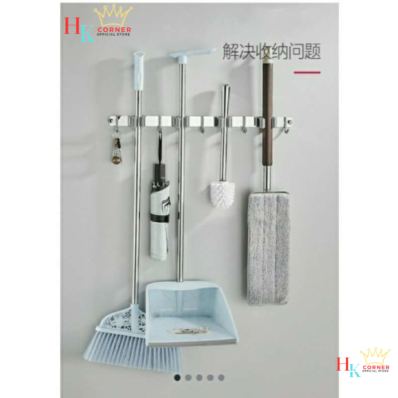 HK Tempat Penjepit Gantungan Sapu Pel Mop Broom Holder Gantungan Stainless Steel SUS 304
