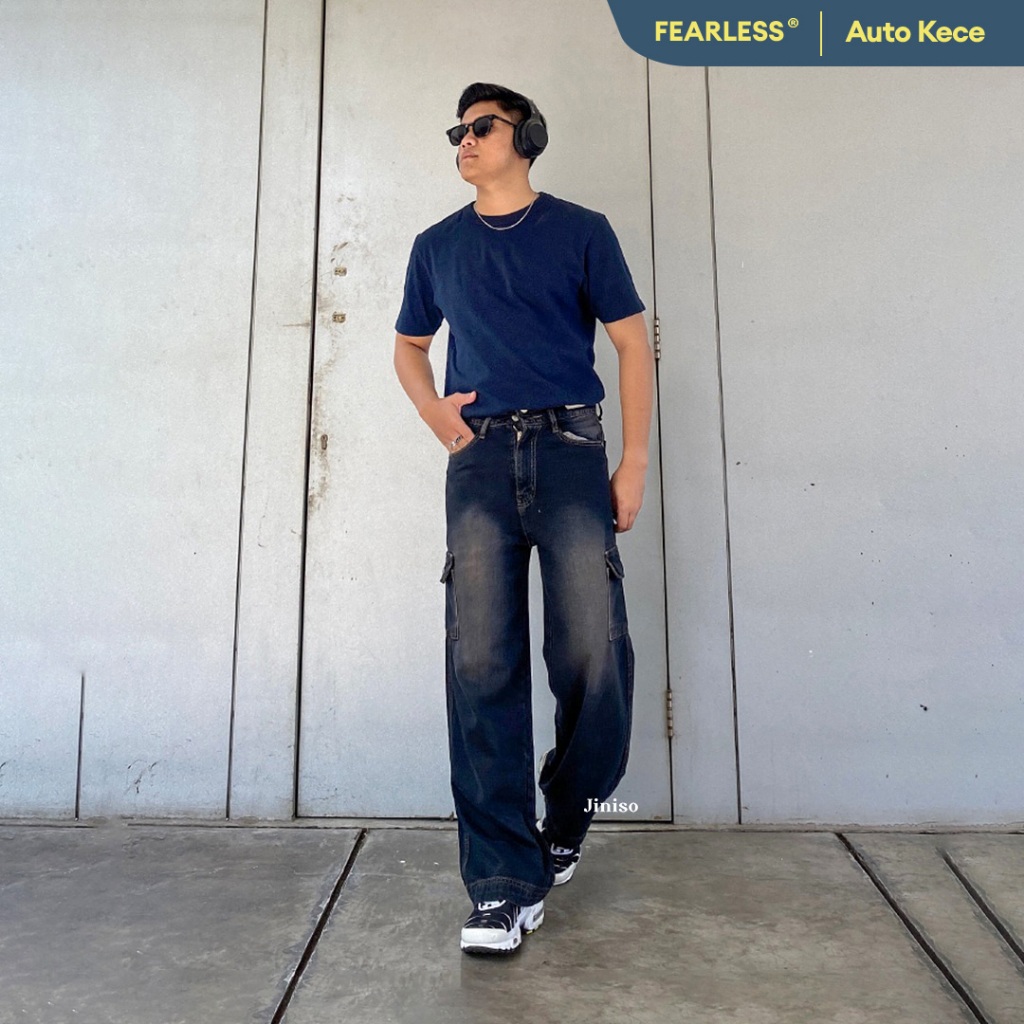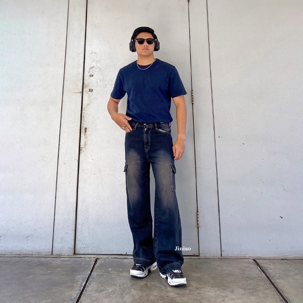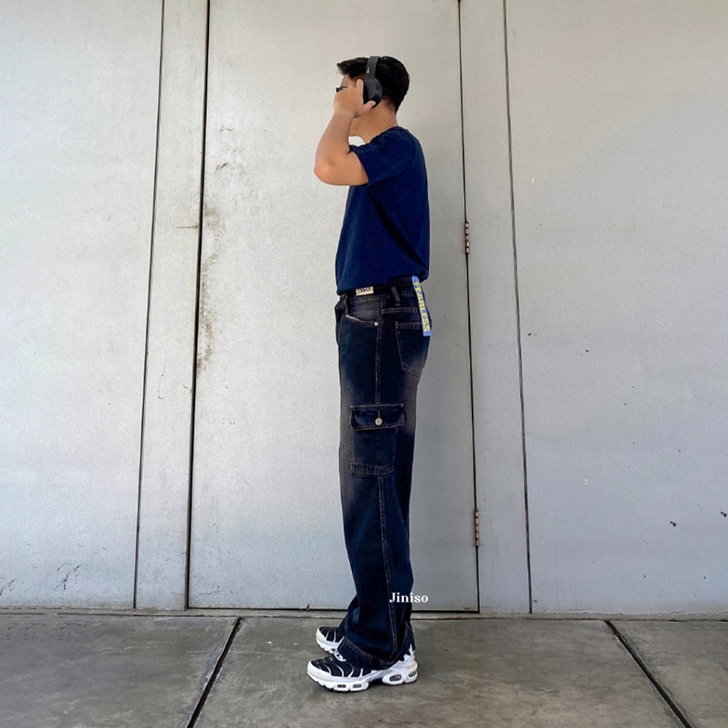 JINISO OFFICIAL STORE - Loose Cargo Denim Jeans Pria 463