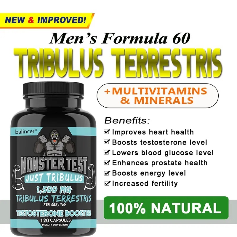 Tribulus Terrestris 1500mg Capsule, Boost Energy, Mood, Stamina & Performance, for Men & Women 30 to 120 Caps