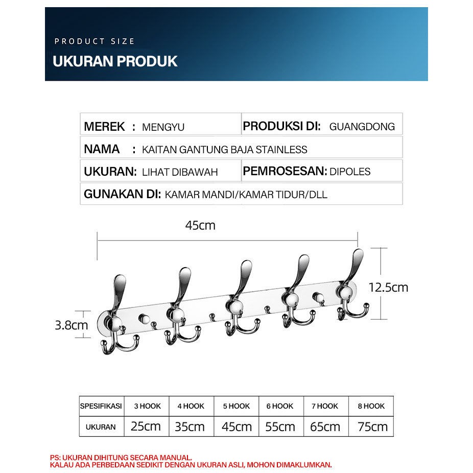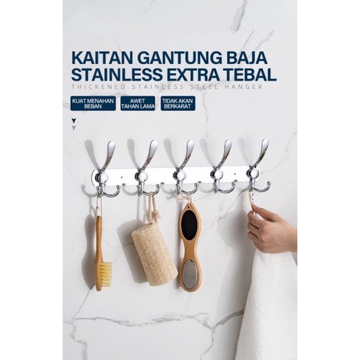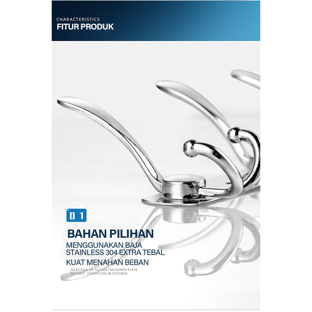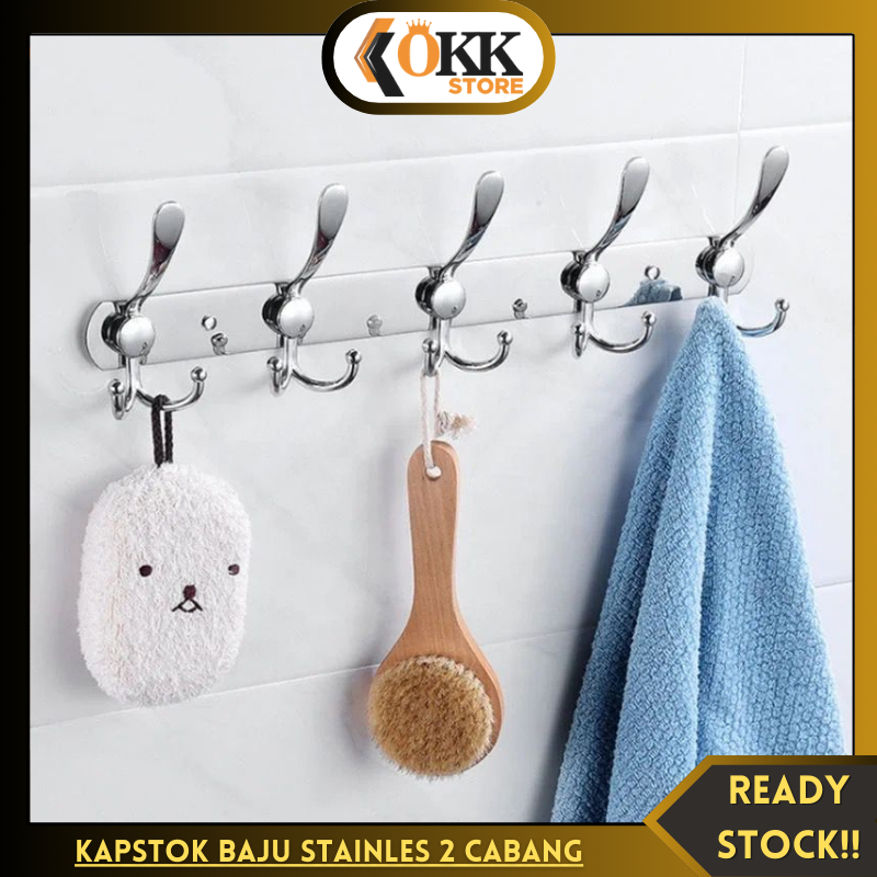 OKK Kapstok Gantungan Baju Hook 2 Cabang 5 Kait Hanger Baju Stainles Steel Bagus Kokoh