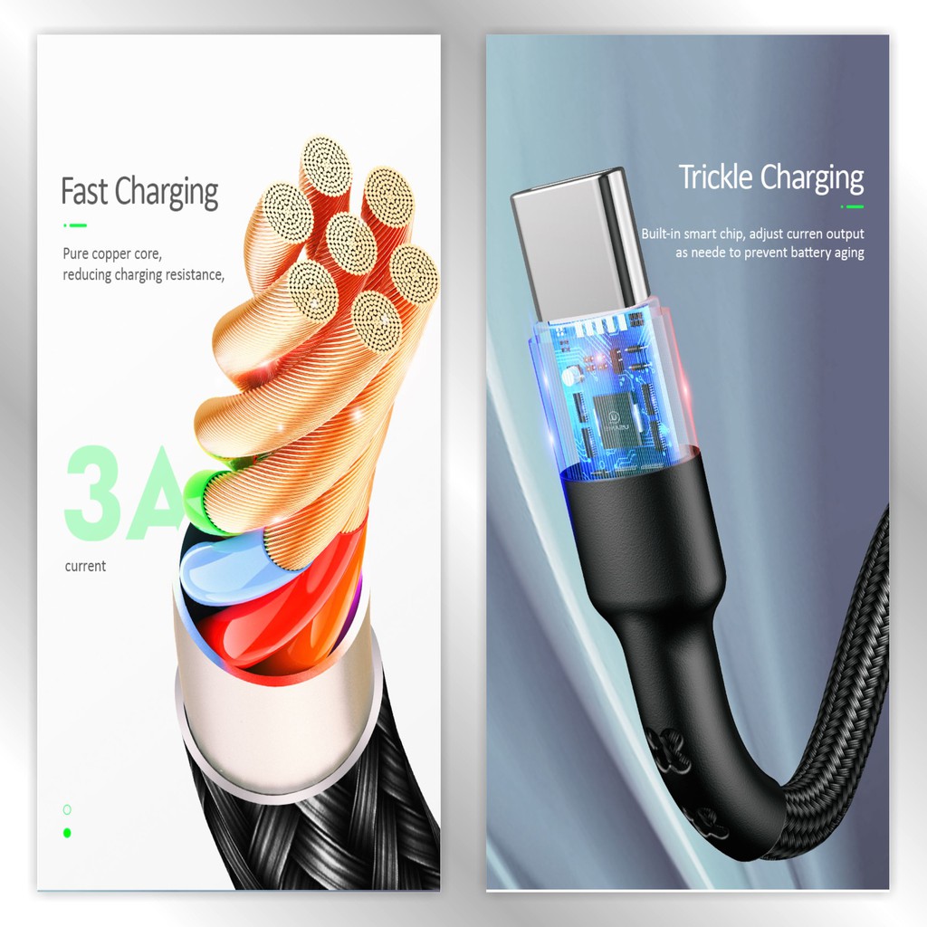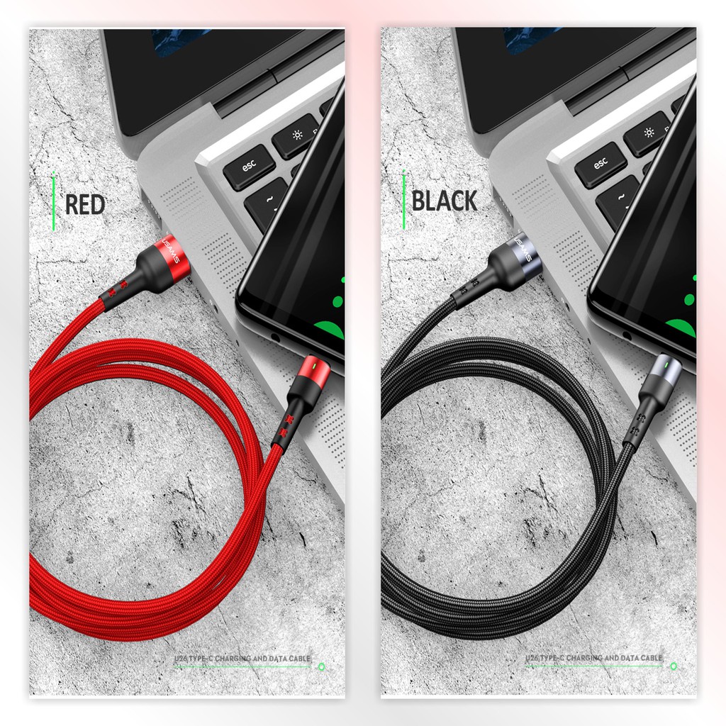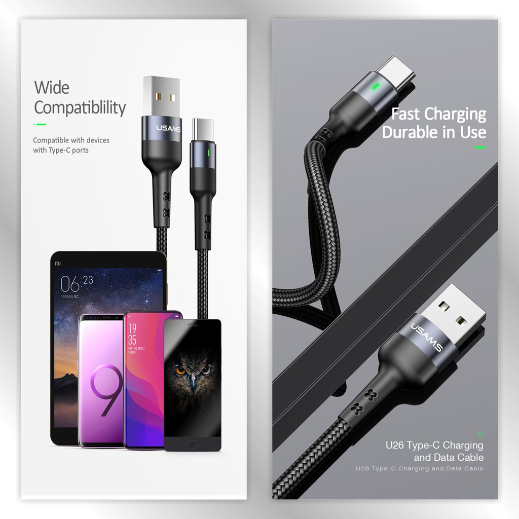 USAMS U26 Kabel Data Type C 3A Fast Charge LED Indikator