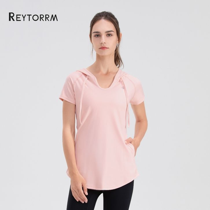 Hoodie Baju Olahraga Wanita Lengan Pendek Sport Kaos Olahraga Badminton Senam Jogging Gym Fitness Simple Terbaru