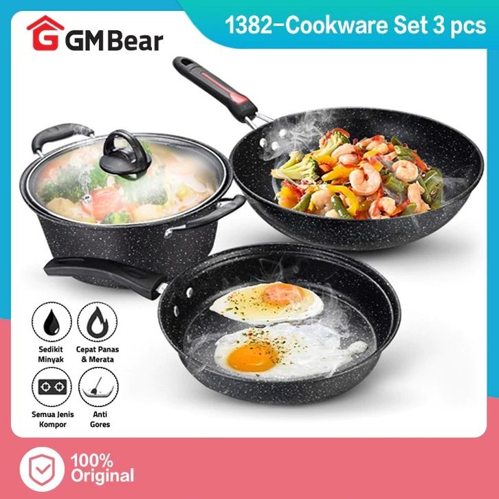 GM Bear Bundle Hemat Panci Wajan Set isi 3pcs 1042 + Psau Dapur Set isi 8 psc 1068