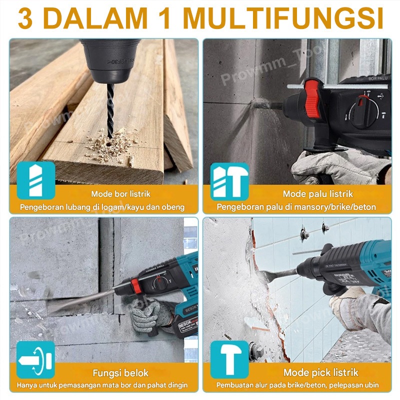 Bor Beton 3 Fungsi Original Brushless Impact Drill Ketik 26 Rotary Hammer Drill Cordless Mesin Bor Beton Listrik