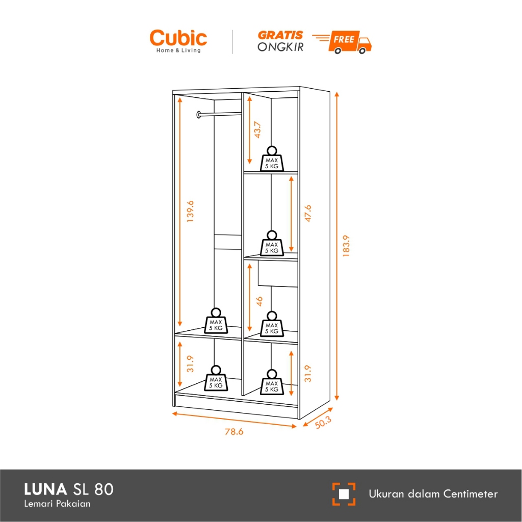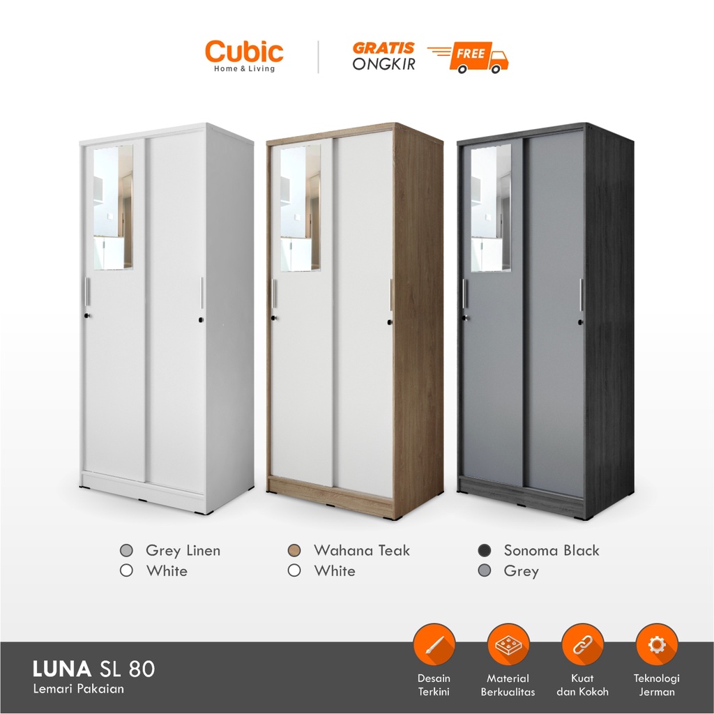 Cubic Lemari Pakaian Sliding Minimalis / Wardrobe Baju / LUNA SL 80