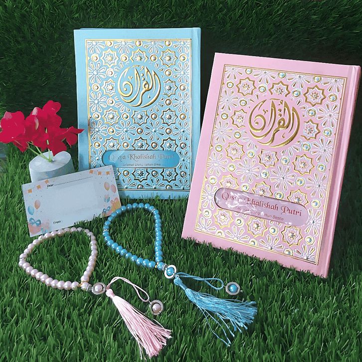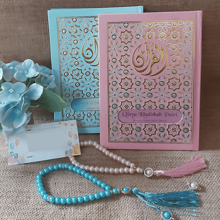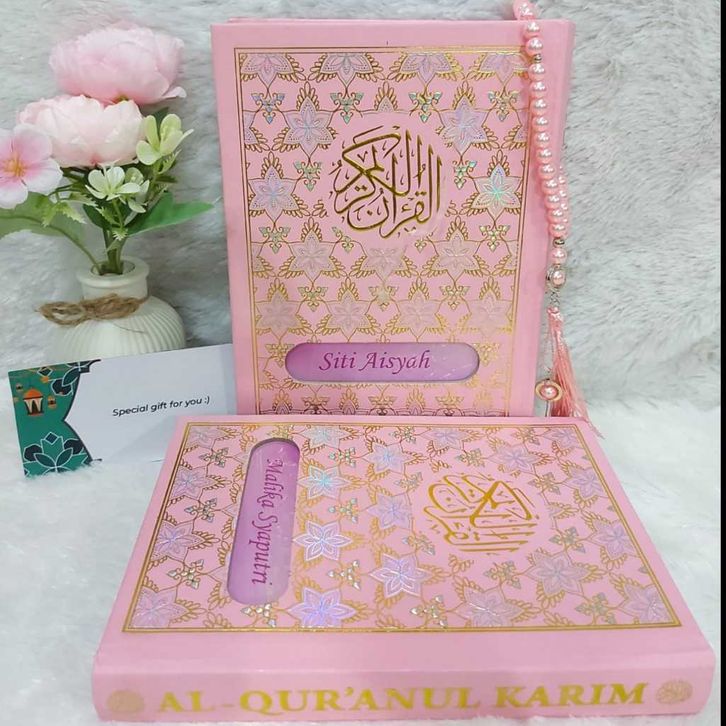 PREMIUM Al-Quran A5 Hologram Free Tasbih Mutiara - A5 Quran Custom Nama Eksklusif Emboss Emas Silver Hologram