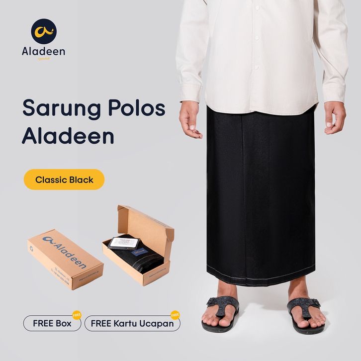 TERLARIS Sarung Tenun Polos Aladeen - HITAM Size Dewasa Free Box dan Kartu Ucapan NEW