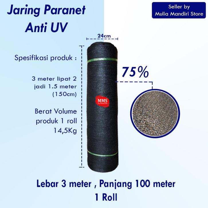JARING PARANET ANTI UV LAYERS 75% ORIGINAL HDPE LEBAR 3 METER PANJANG 100 METER (1ROLL)