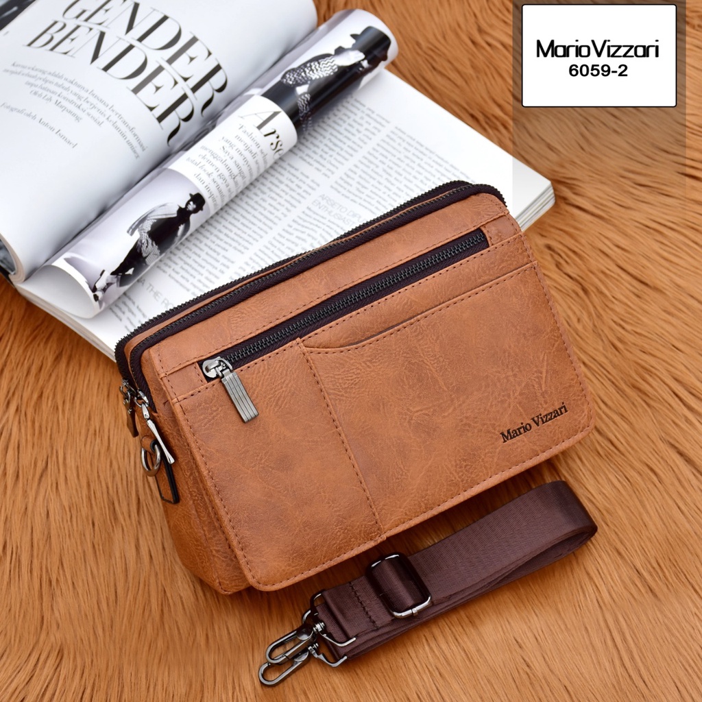 GRATIS ONGKIR Tas Selempang Pria Kulit Mario Vizzari Boston 6059-2 Tas Bahu Pria Tas Handbag Tas Kulit Halus