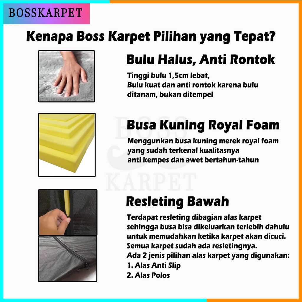 Karpet Bulu Rasfur Ukuran 200x150 Tebal 6.5 cm Anti Slip
