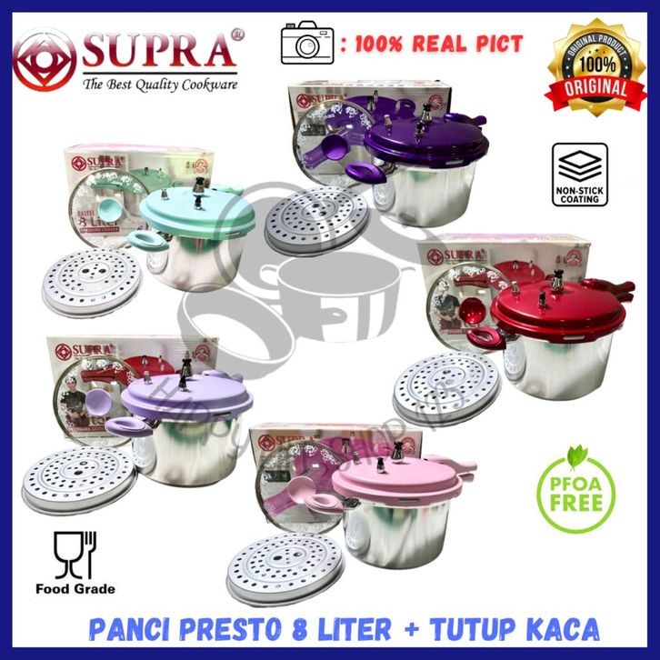 Panci Presto 8 Liter Supra Panci Presto 8 Liter Supra + Tutup Kaca Panci Presto Pelunak Daging Panci Presto Daging