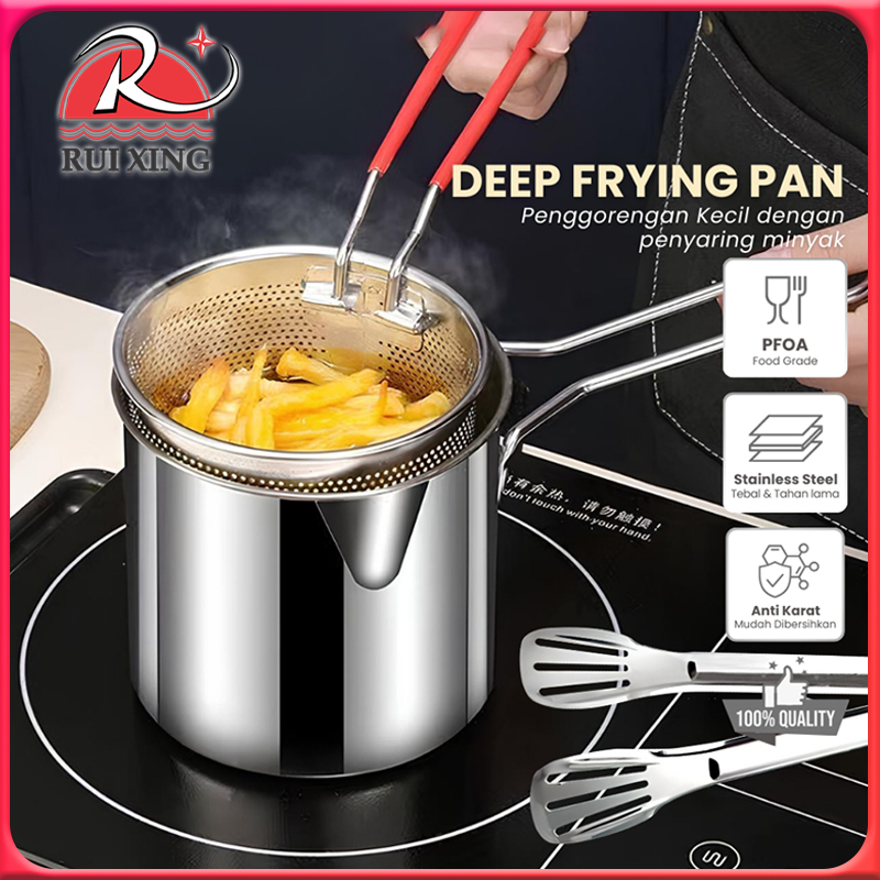 Deep Fryer 4in1 Multi Stainless Steel 304 Panci Penggorengan Kentang Saringan Minyak dan Capitan Makanan Multifungsi