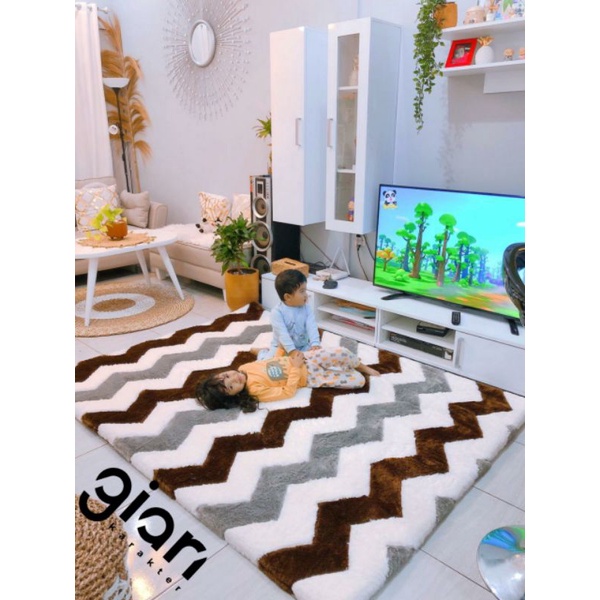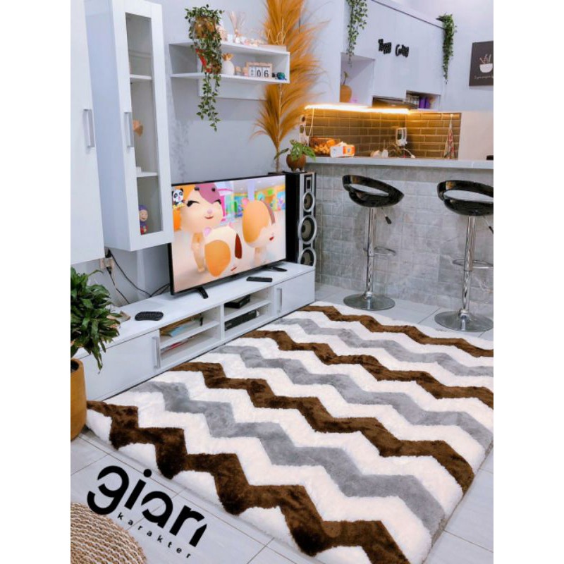 Karpet Bulu tebal / Kasur lantai Bulu / Busa Motif ZigZag premium Anti Slip Size 200x150cm