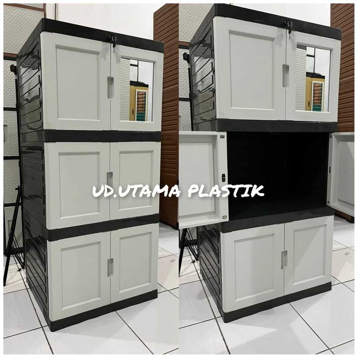 Termurah Lemari plastik lemari pakaian plastik lemari pintu susun 4 Lemari Dengan Kaca dan Kunci Lemari Polos Terlaris