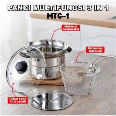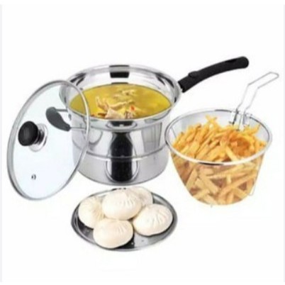 BWI Panci Deep Fryer Goreng Kukus Masak Steamer 4 In 1 Panci Susu Saringan Multifungsi 22 CM Premium Quality
