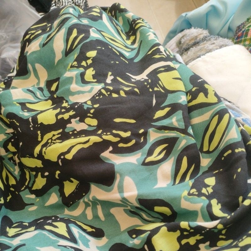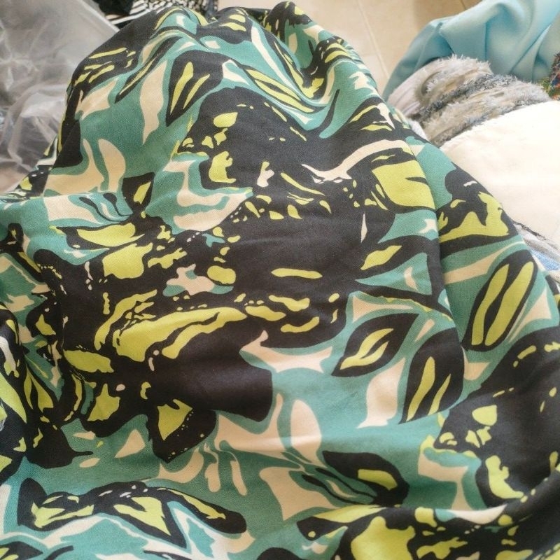 KAIN KILOAN KATUN RAYON MOTIF ABSTRAK HIJAU HITAM UTUH