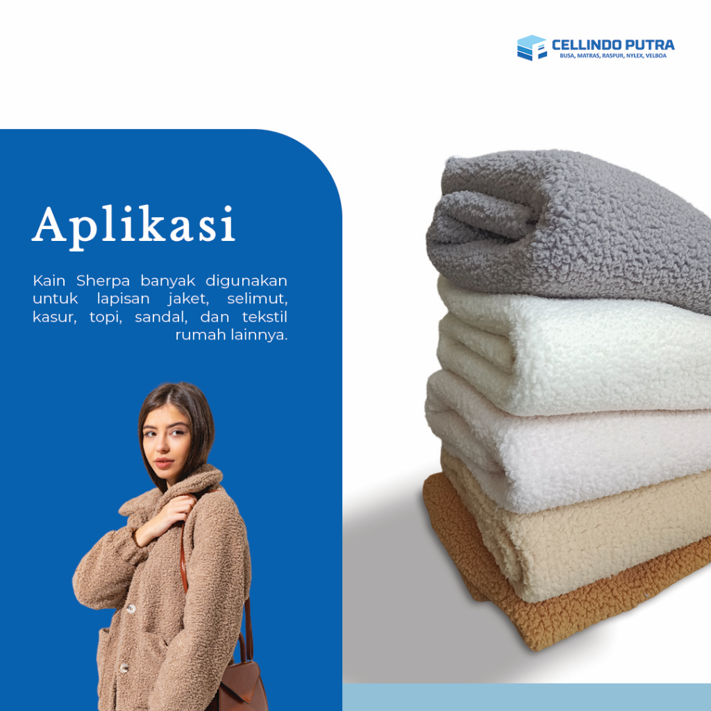 Cellindo Kain Sherpa Bulu Domba 2 Sisi Bahan Selimut, Jaket, Jual Per 50cm & Kiloan