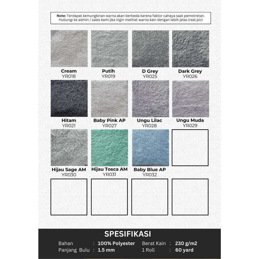 Ruveetex Kain Yelvo Ruveetex 1.5mm Kain Bulu Lembut 1 Yard (90 cm x 150 cm) Cocok untuk Boneka, Tas, Sajadah, Kasur Bayi
