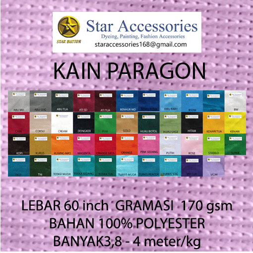 Putih, BABY, Krem, ROSE, COKLAT SUSU, ABU MUDA, ABU SEDANG, Abu Tua, TURKIS MUDA, TURKIS SEDANG, TURKIS TUA, UNGU MUDA, KENARI, KENARI TUA, PINK SEDANG, ORANGE, KUNING MAS, STABILO, TURKIS PEACOK, MAGENTA, KOPI, BSDT, BSDM, TNI, FUJI, SUPER, HIJAU BOTOL, HATI SEDANG, TOSKA SEDANG, TOSKA TUA, Ungu Tua, CABE, BENHUR, BENHUR MUDA, DONGKER, Hitam, ORANGE BATA, KUNING BUSUK, TOSKA MUDA, HATI TUA, GOLD, BW, Sage