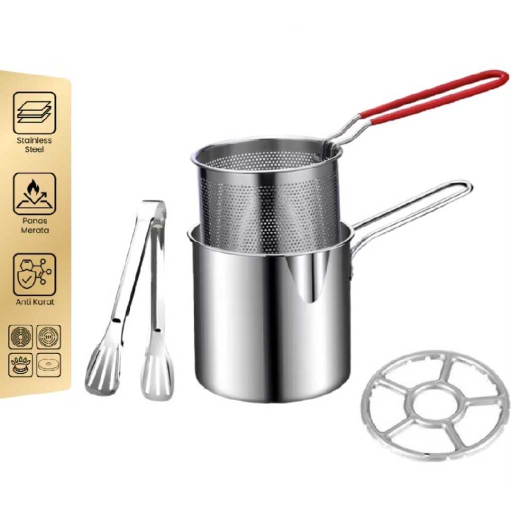 TJ-826 Deep Fryer 4 In 1 Multi Stainless Steel Panci Penggorengan Kentang Saringan Minyak Dan Capitan