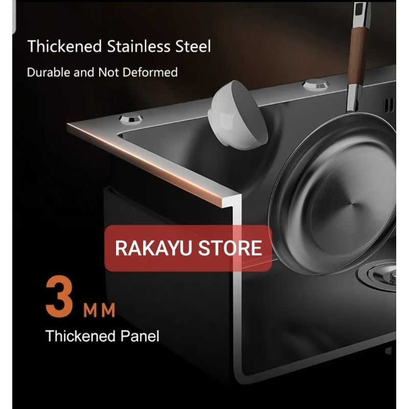 Bak cuci piring / Paket Kitchen Sink BLACK / SUS 304 Bak Cuci Piring Stainless HITAM Ketebalan 3.0mm Kitchen sink Modern