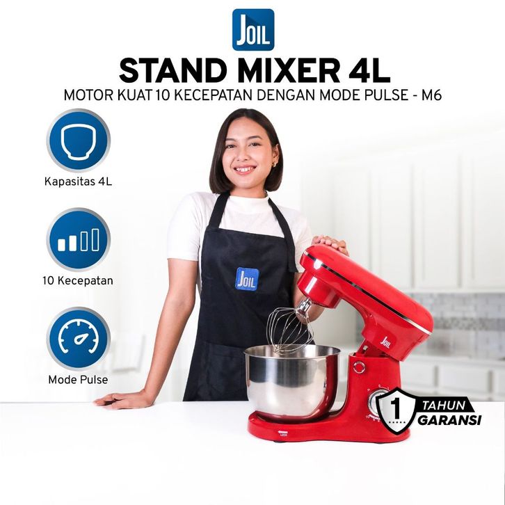 Joil Stand Mixer 4L Pulse M0De Stainless Steel 3 Pengaduk M6