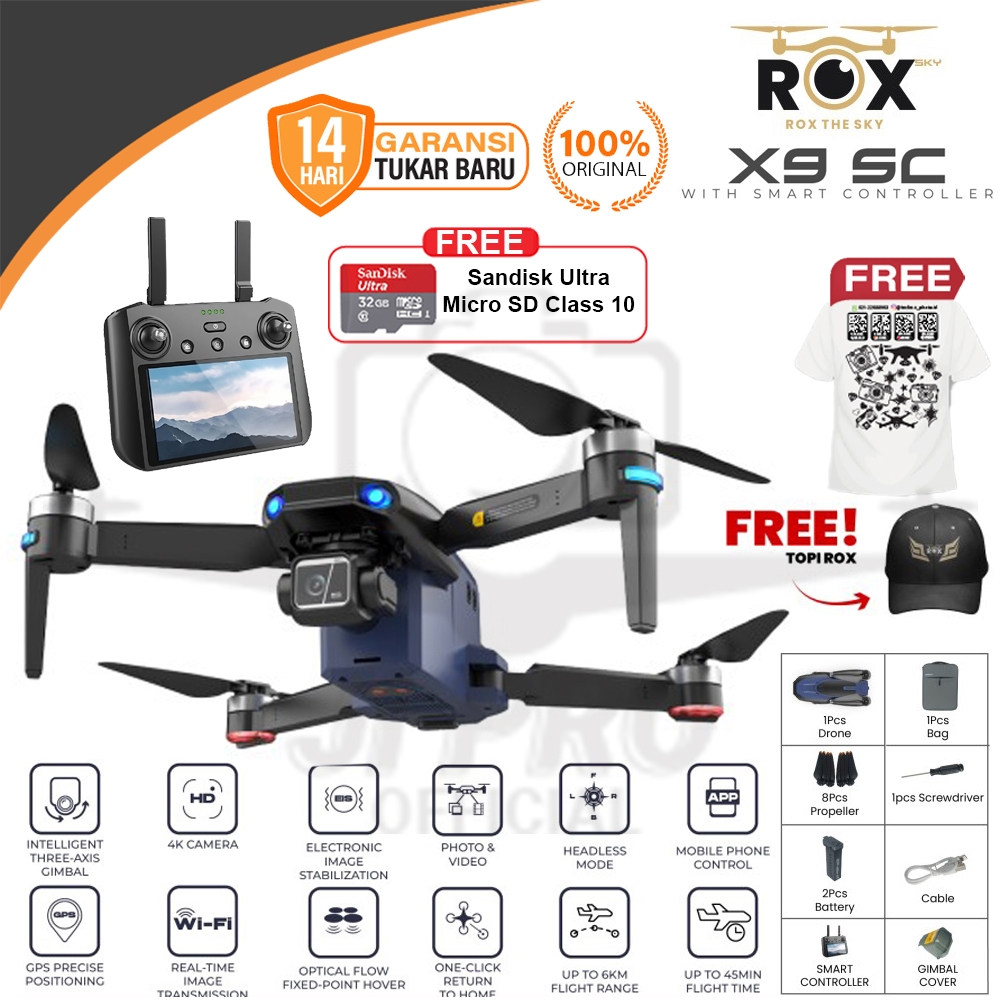 Rox X9 Pro Gps Drone 3-Axis Gimbal 4Km Camera 4K 12Mp With Rc Quadcopter Original