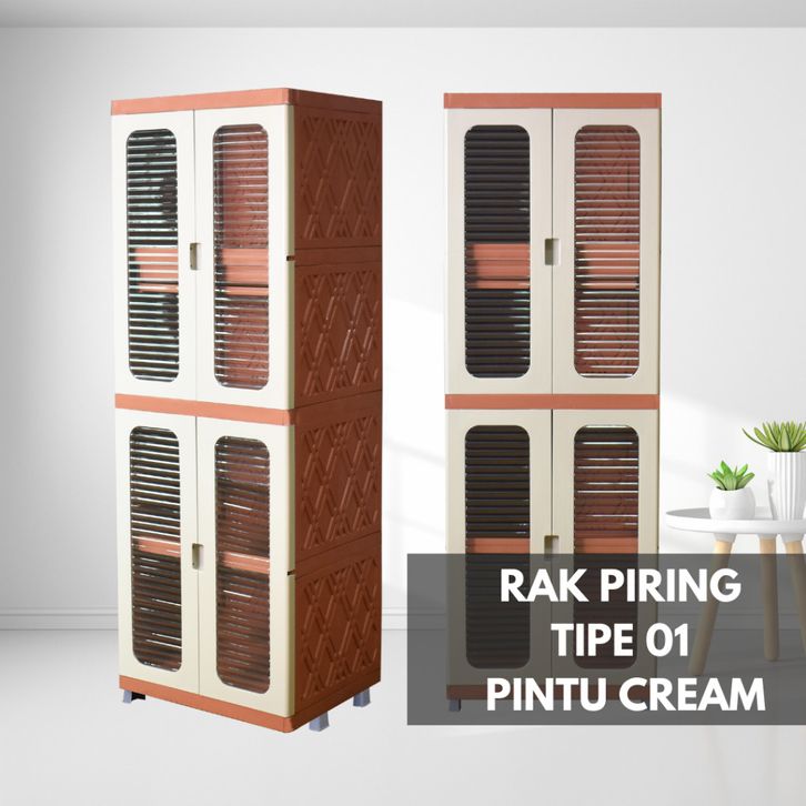 LEORA | LEMARI PIRING RAK PIRING lemari susun lemari plastik lemari dapur piring Pintu Transparan