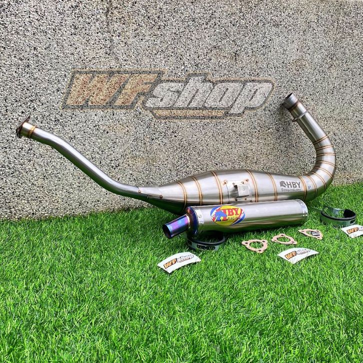 KNALPOT NINJA R RR SS HBY FULL STEANLIES TYPE MONCONG BLUE/PURPLE MIRING BAWAH