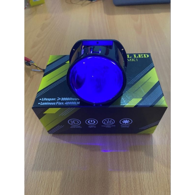 Lampu Biled MKL 2.5 Inch Devil Light Blue Lens 60W Projector Motor Mobil Super Terang
