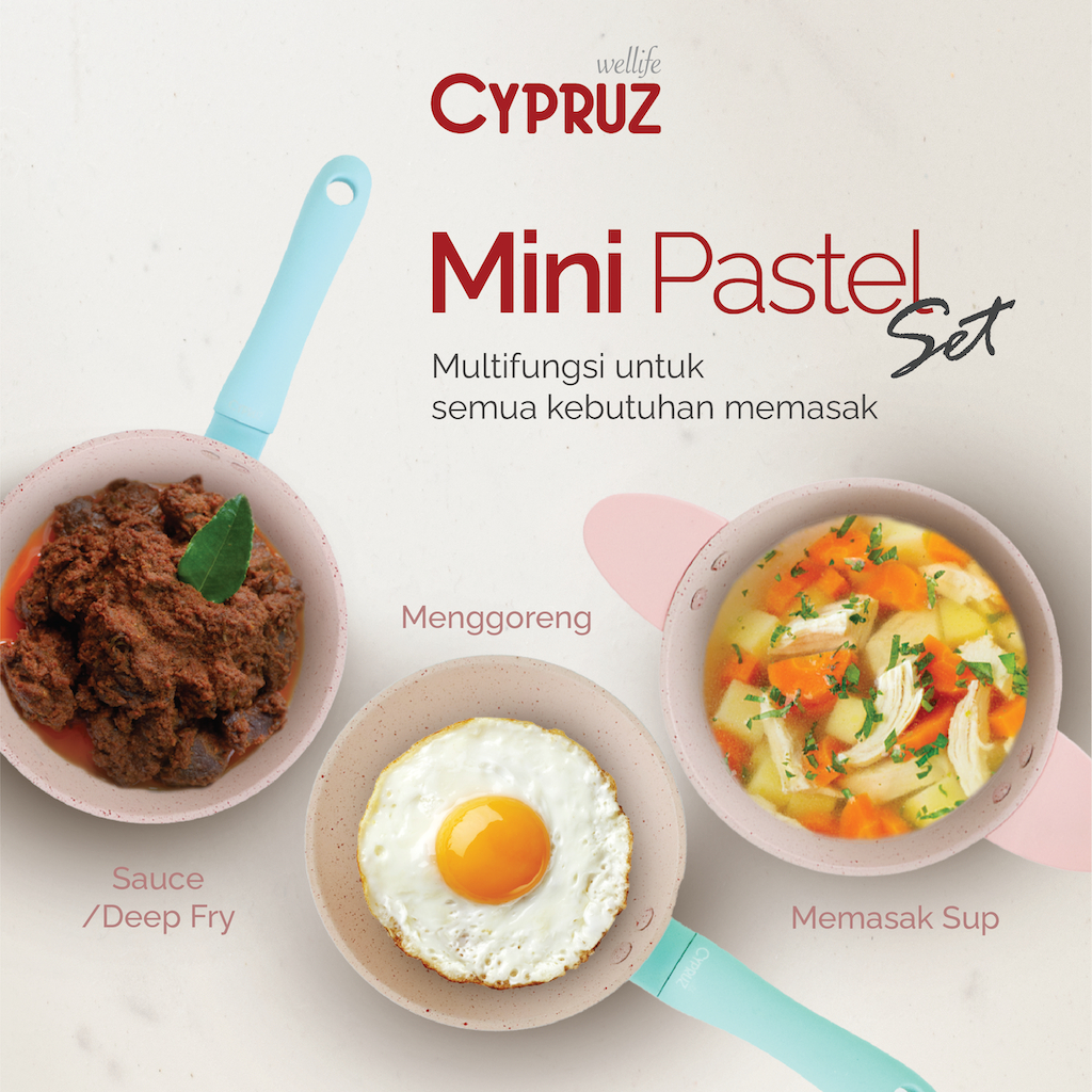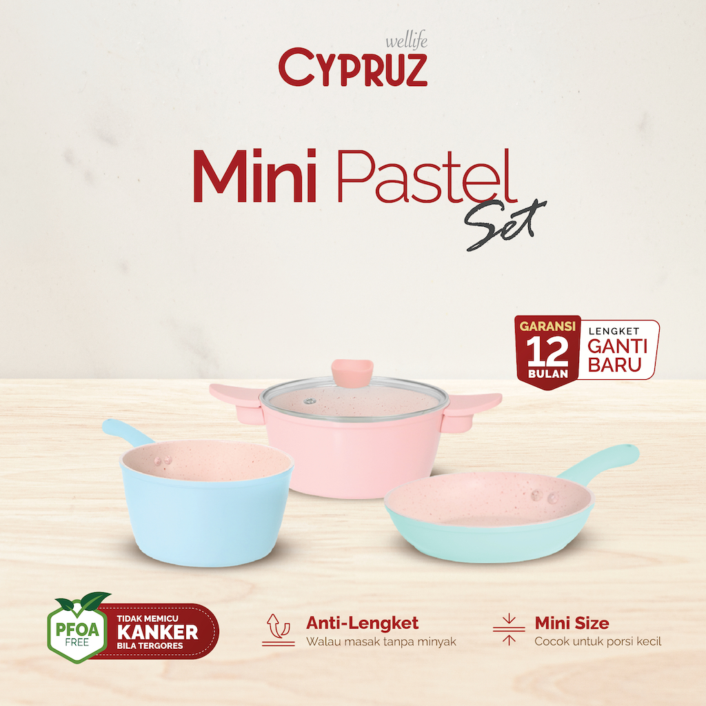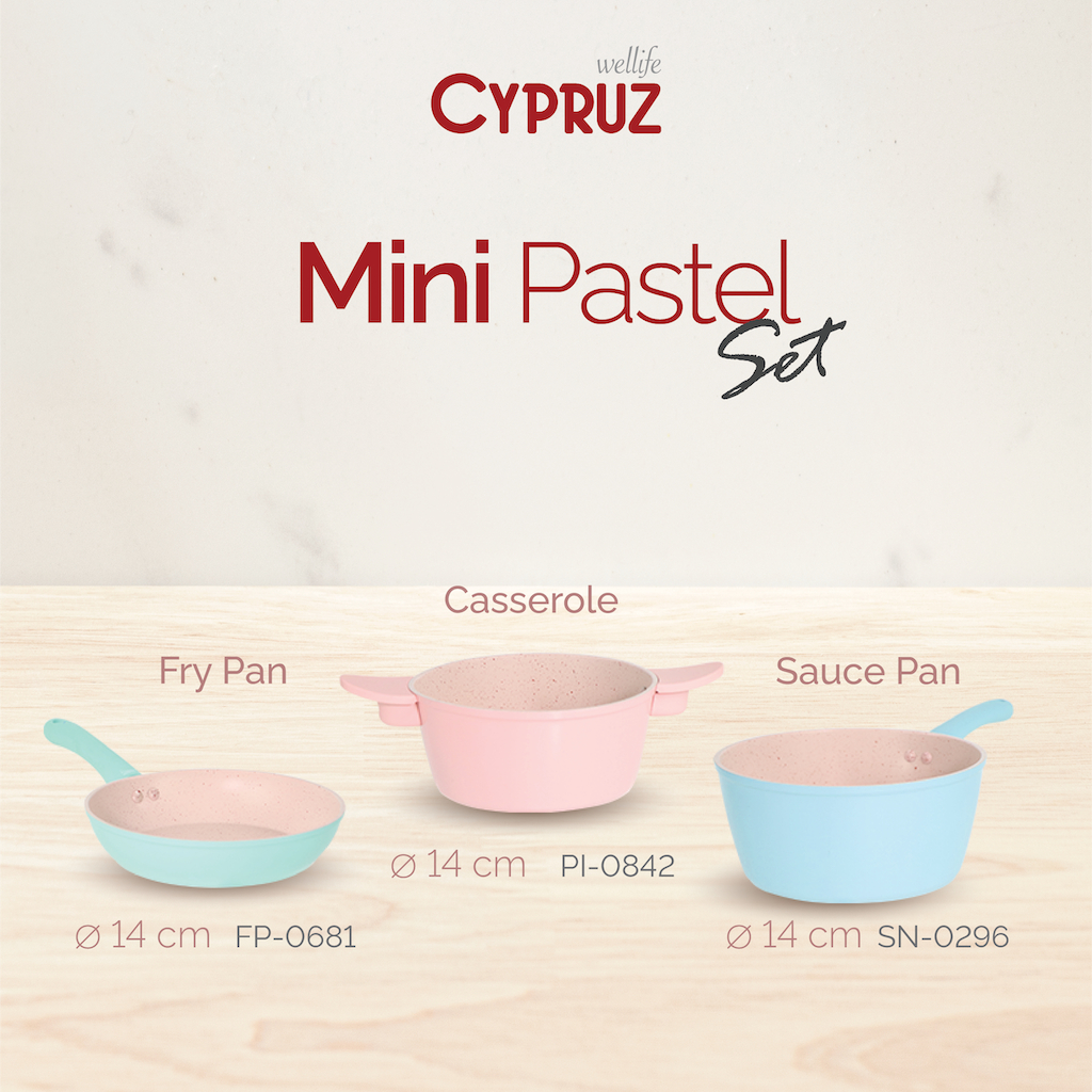 Cypruz Cookware Set Mini Pastel Series Wajan Set Premium Anti Lengket 4 Pcs