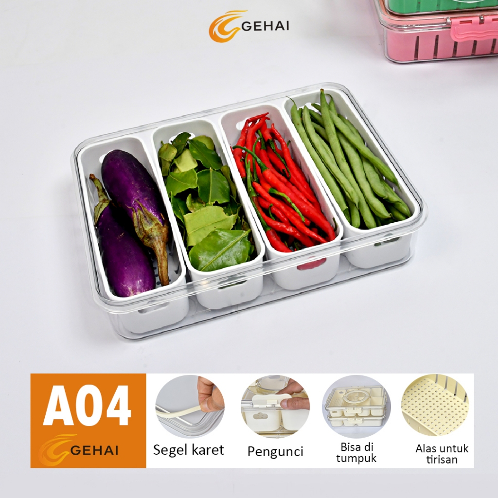 Food Container A04 Kotak Penyimpanan Kulkas Wadah Bumbu Dapur Sayur Cabe Praktis