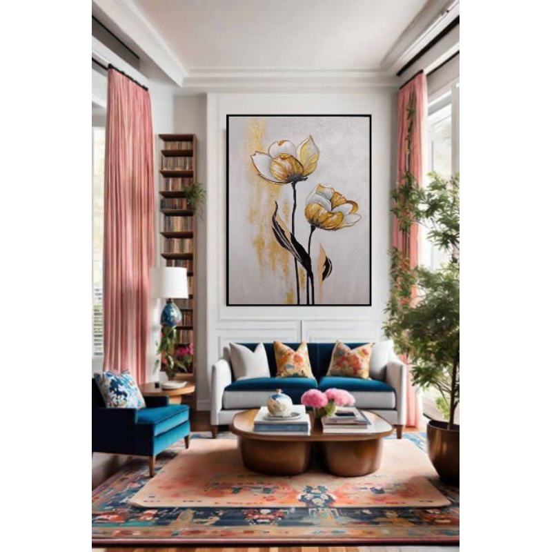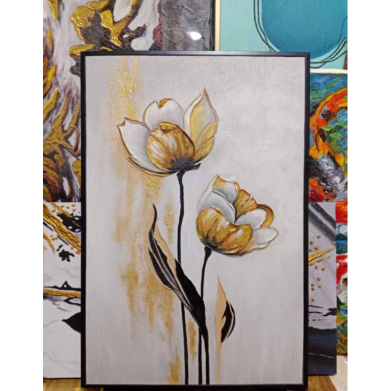 lukisan dinding lukisan bunga tulip moderns(siap pajang)