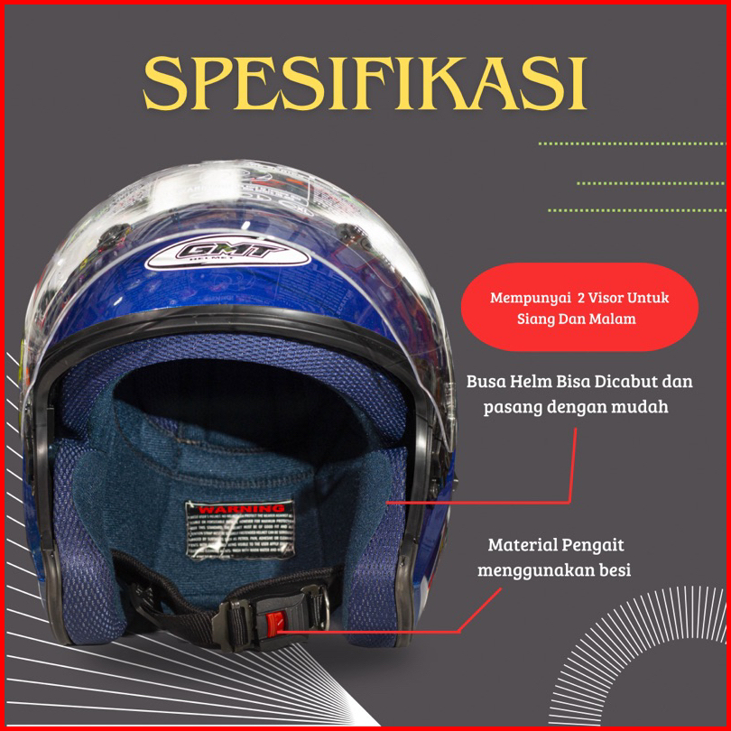 Helm Half Face Gmt Original Double Visor Helem Motor Sni Murah Helmet Pria Wanita Dewasa