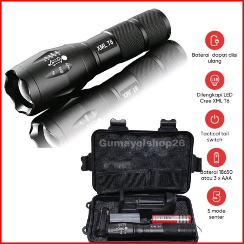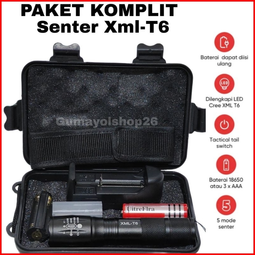Sale Senter Led Jarak Jauh T6 L2 Super Terang Senter Fullset Box