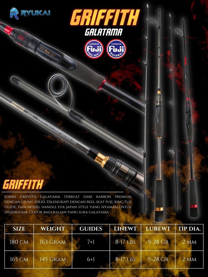Joran Spinning Carbon Solid Galatama Japan Style Handle Fuji 8-17 lbs Ryukai Griffith 165 180 cm