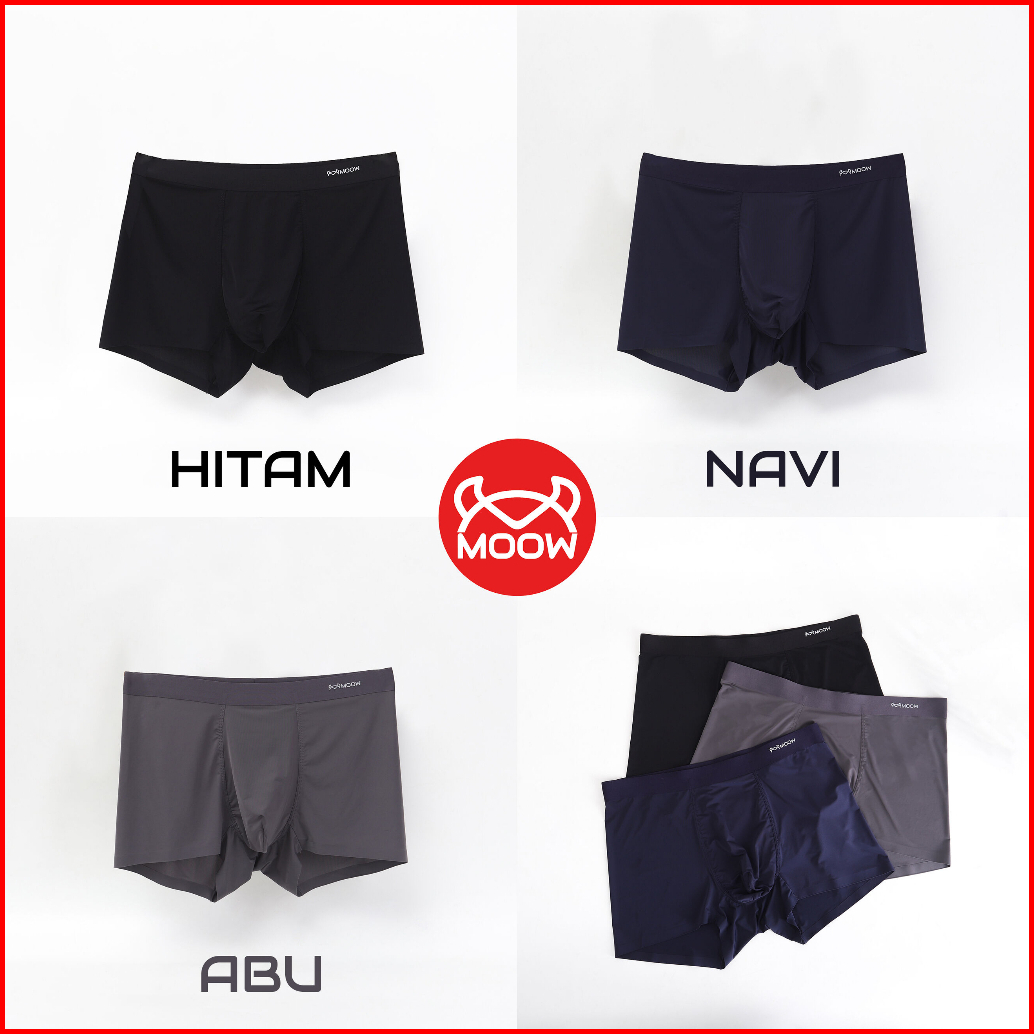 Moow Paket 3 Pcs Celana Dalam Pria Boxer Icesilk Seamless Premium Adem Lembut Antibakteri 5a Mp52
