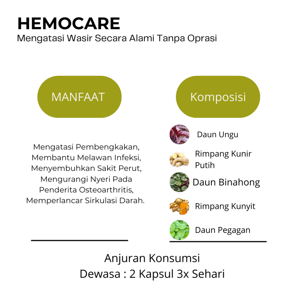 Obat Wasir Ambeien Paling Ampuh Benjolan Anus Ambien Sembelit BAB Berdarah Jamu Herbal HEMOCARE NATURINDO