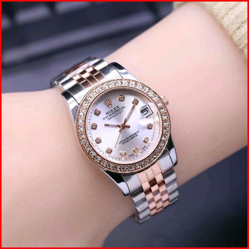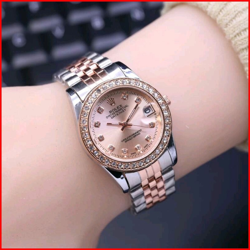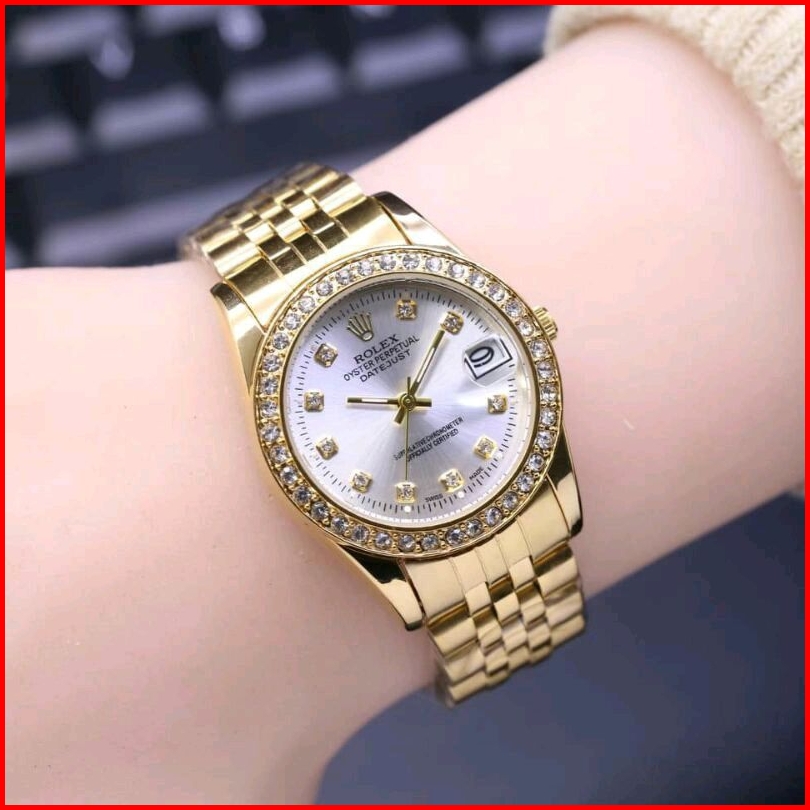 Promo Jam Tangan Wanita Rolex Anti Air Rantai Tanggal Aktif Motif Mata Free Box Dan Baterai Cadangan