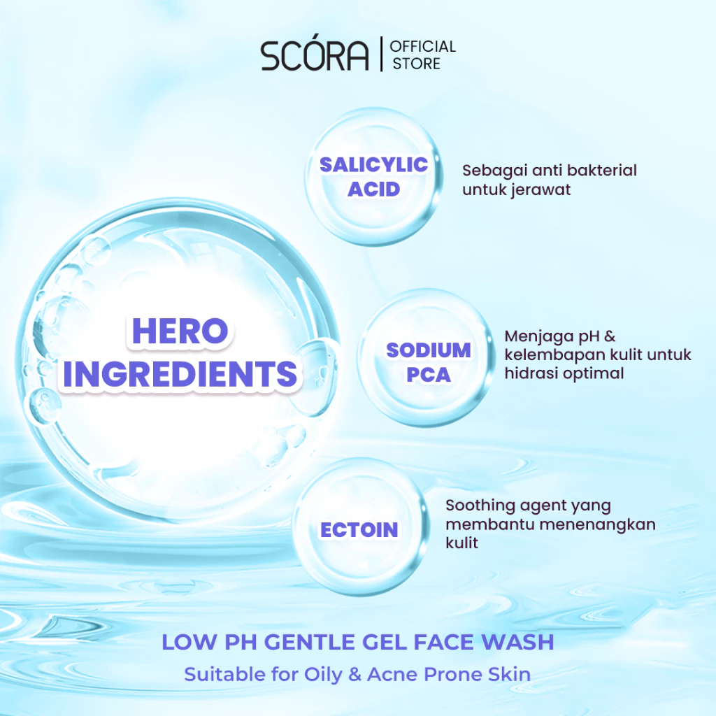 Scora Official Store | SCORA Salicylic Acid Gentle Low pH Cleanser Sabun Cuci Muka Oily Acne Prone Skin Friendly 100 ml
