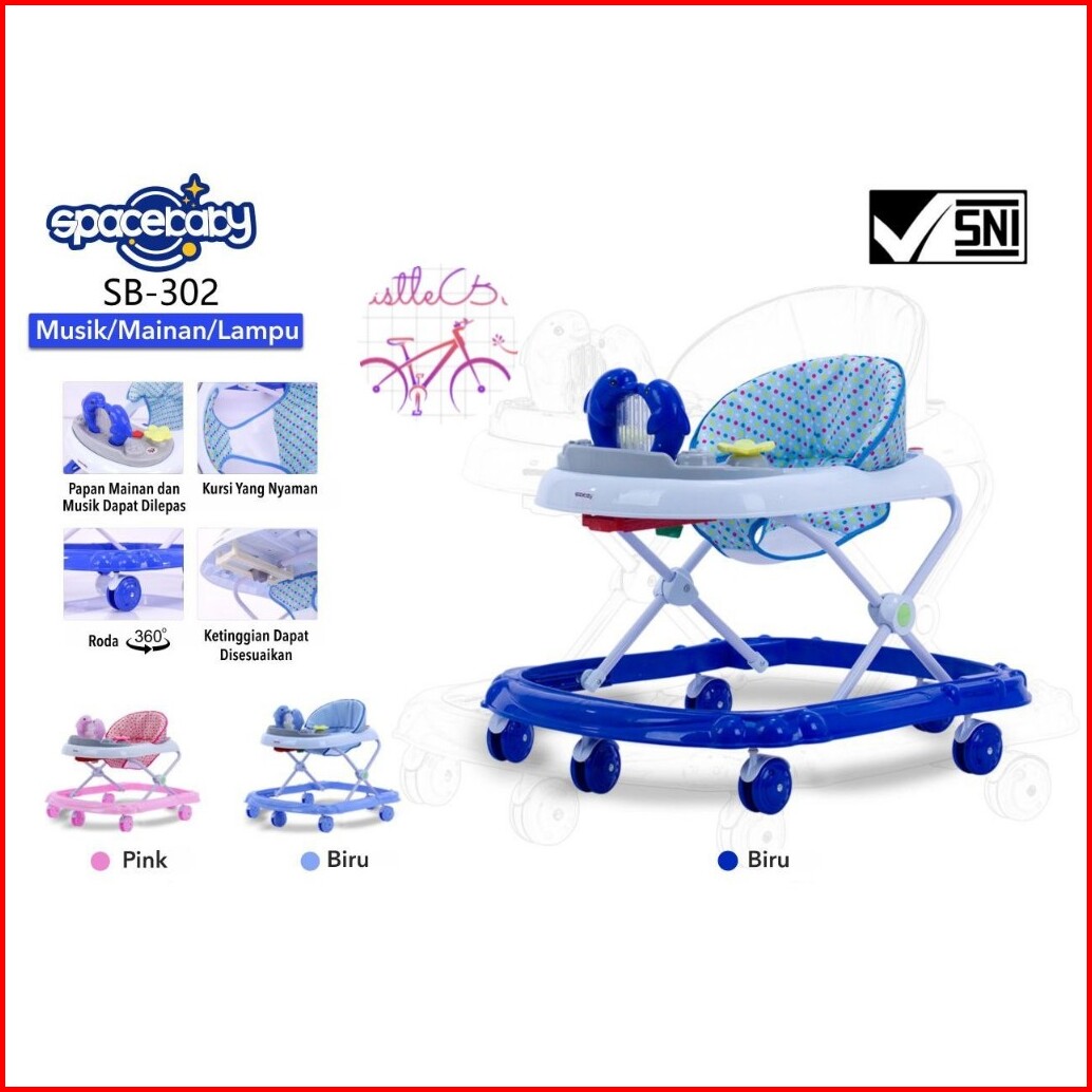Spacebaby Sb302 Baby Walker Dolphin Ic Music Mainan Bisa Dilepas Size Besar 6-18 Bulan