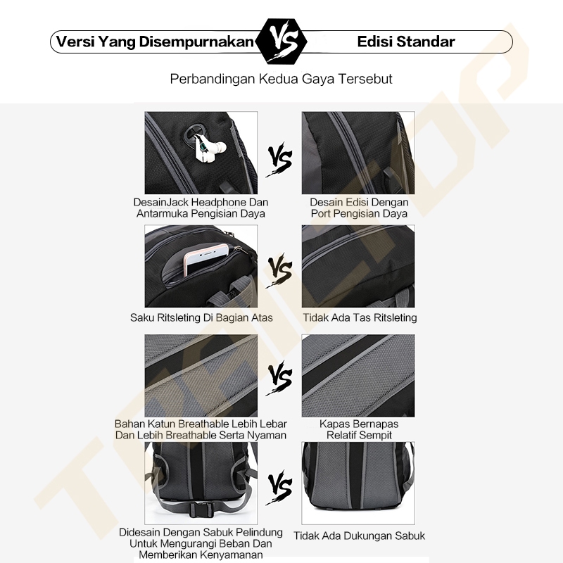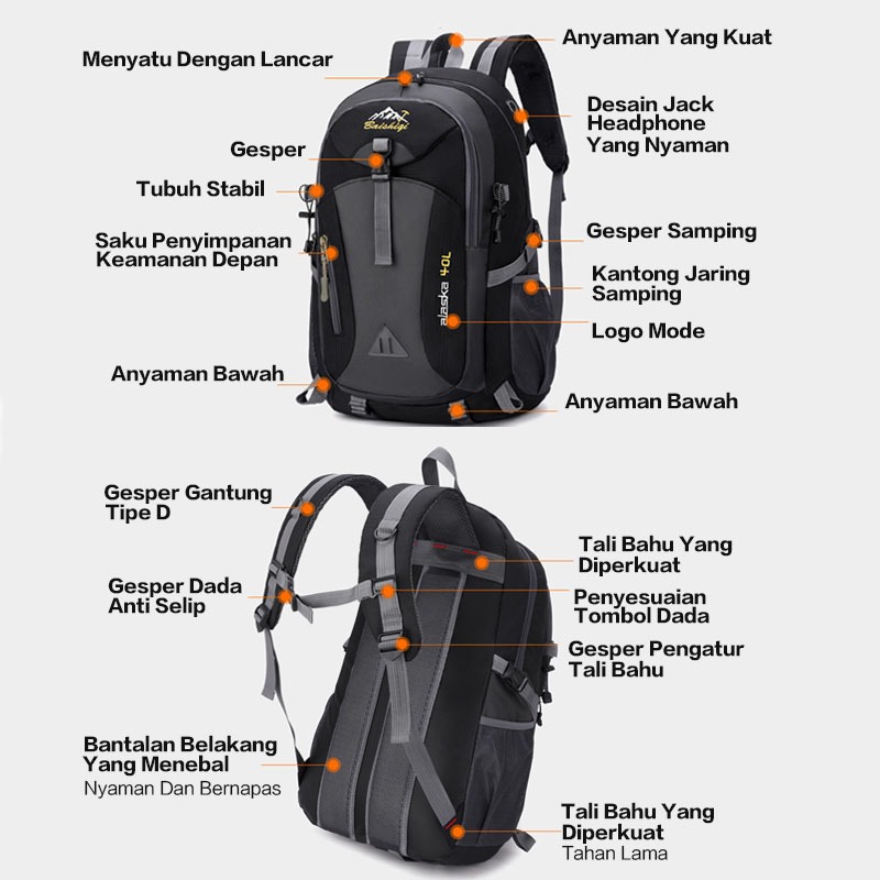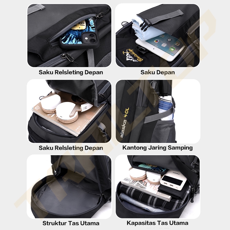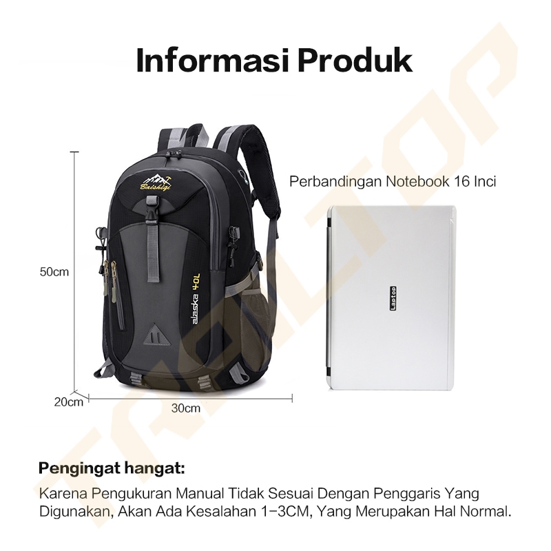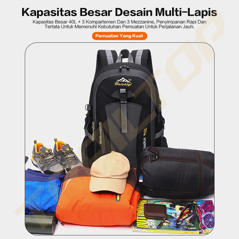 TrailT0P Tas Ransel Pria 40L Waterproof Tas Gunung Camping Tas Ransel Wanita Daypack multifungsi