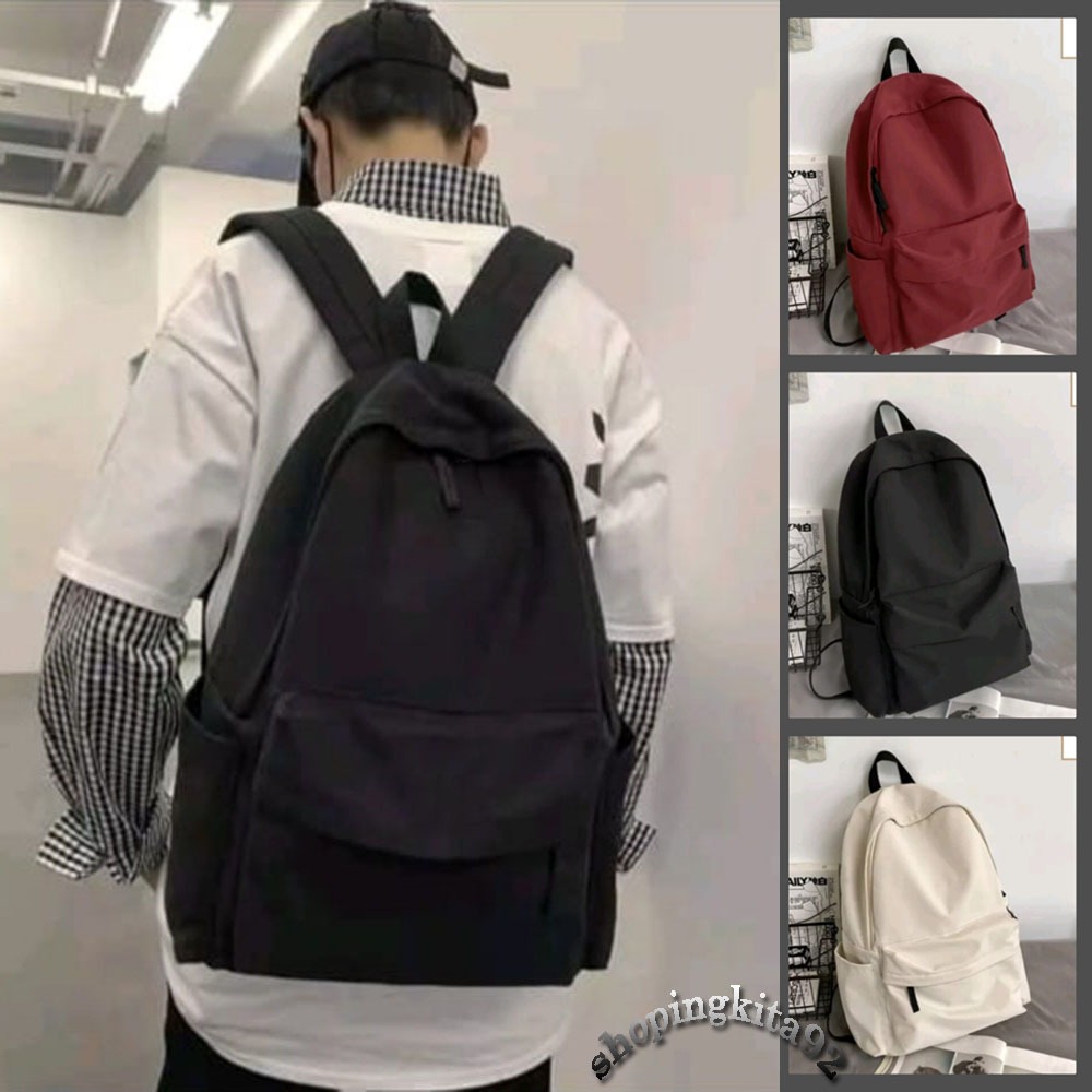 Tas Ransel Pria Distro Backpack Cowok Cewek Polos - Tas Punggung Sekolah Kuliah Kerja Unisex
